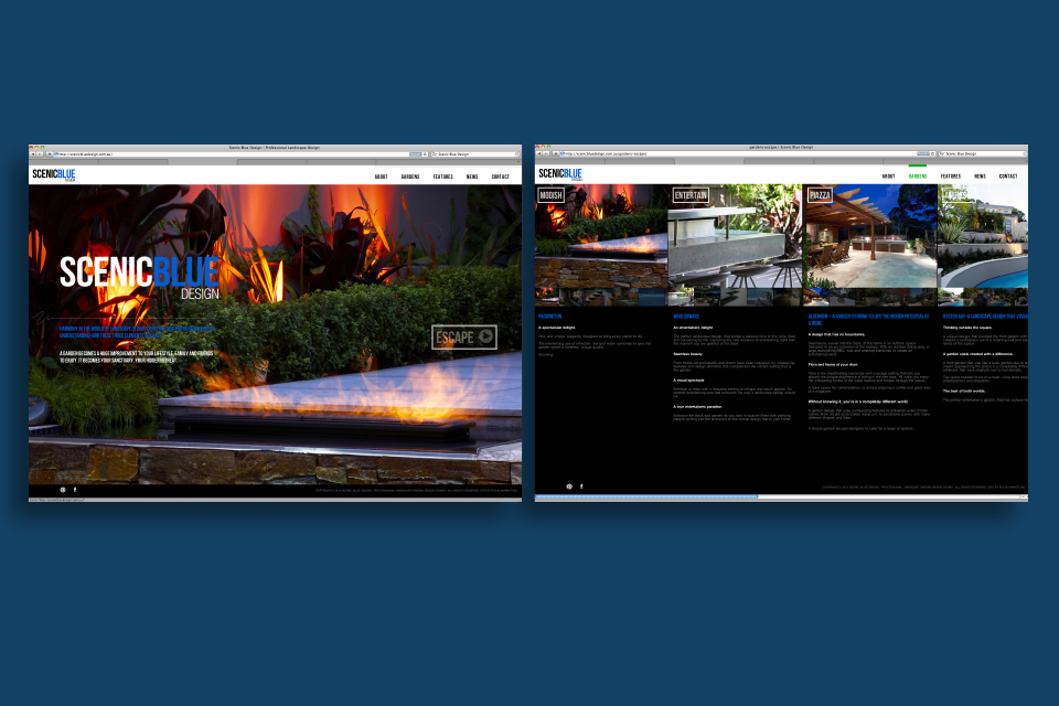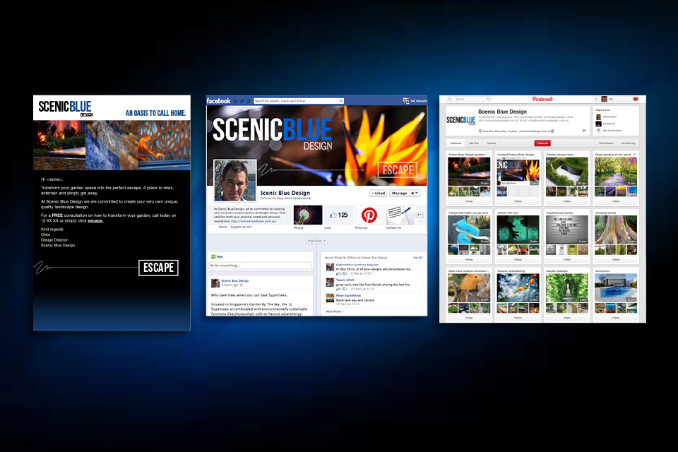 Scenic Blue Design required a shift in their existing brand from being a landscape gardener of bigger outer suburb gardens to one that transforms smaller inner city gardens. The brand was revitalised with a new identity, a new look and a new direction. This included a logo redesign, print collateral, photography, a new website, social media presence including Facebook and Pinterest, a high-end DM piece and eDM. Within 8 weeks of the campaign launch there was 944 unique visits to the new website, 2431 Page visits, 38 Facebook referrals and 250 eDM referrals.